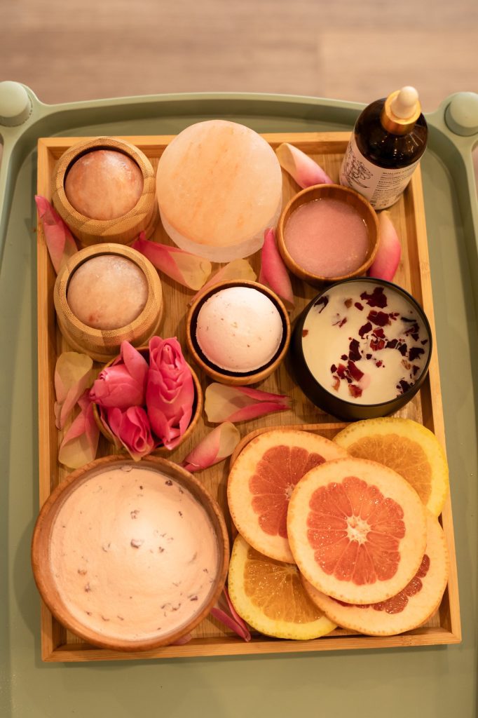 Recline in comfort as warm basalt stones melt away tension during a deeply soothing foot and leg massage. Enhance relaxation with a blissful eye steam mask, known to reduce puffiness and promote stress relief.